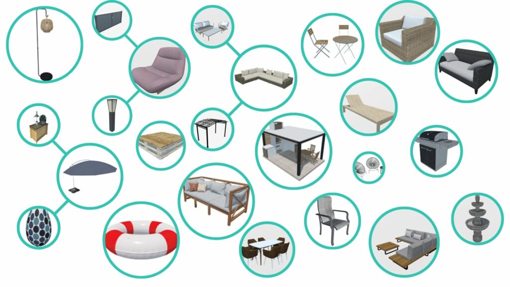 Encontrará una amplia biblioteca de plantas, árboles, objetos de exterior y texturas para personalizar sus proyectos como desee.